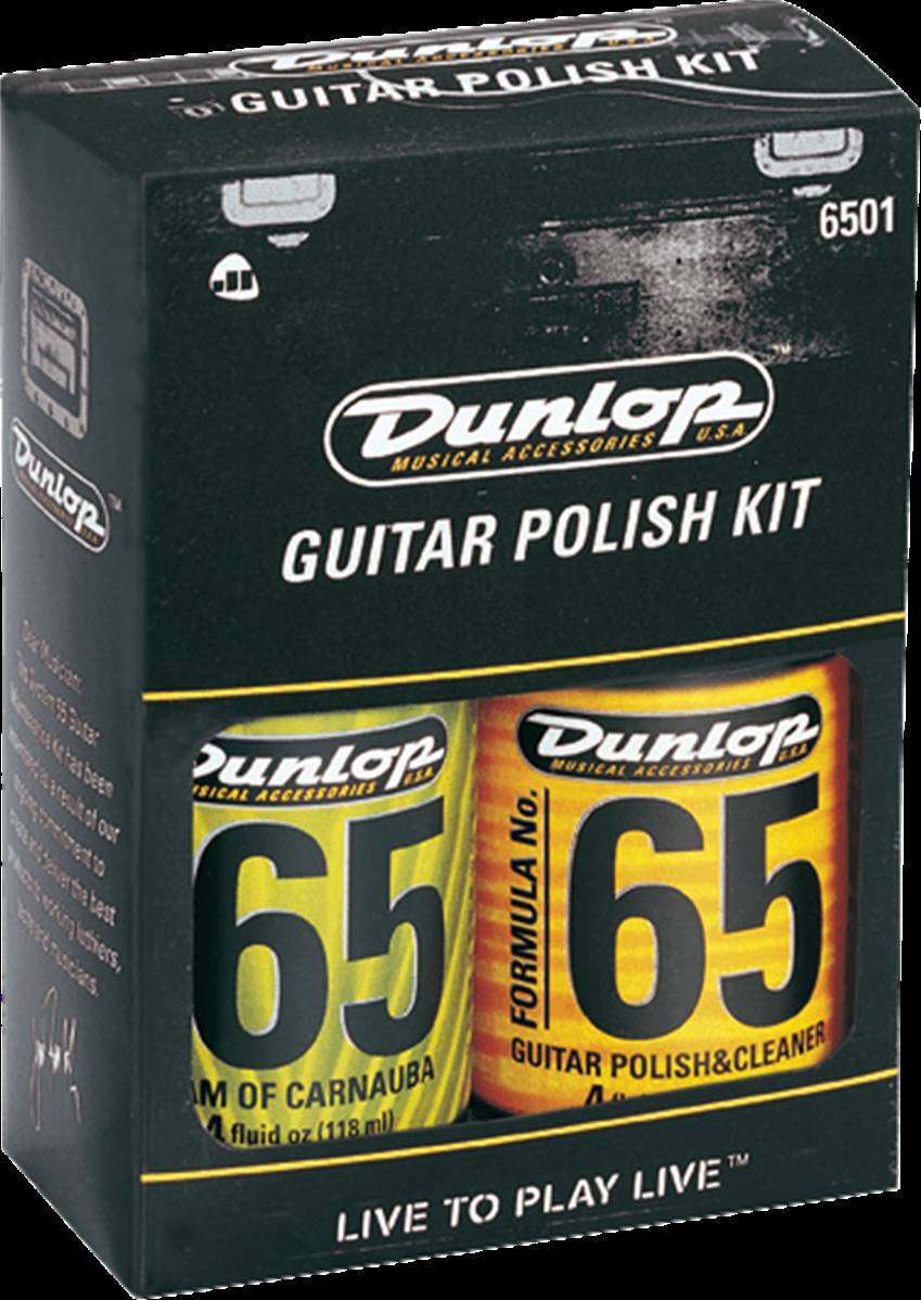 Le kit Guitar Polish 651 comprend :1 x flacon de Polish & Cleaner Formula 65 (ADU 654)1 x flacon de crme de Carnauba Body Gloss (ADU 6574)1 x tissu lustrant 1% coton (ADU 54).