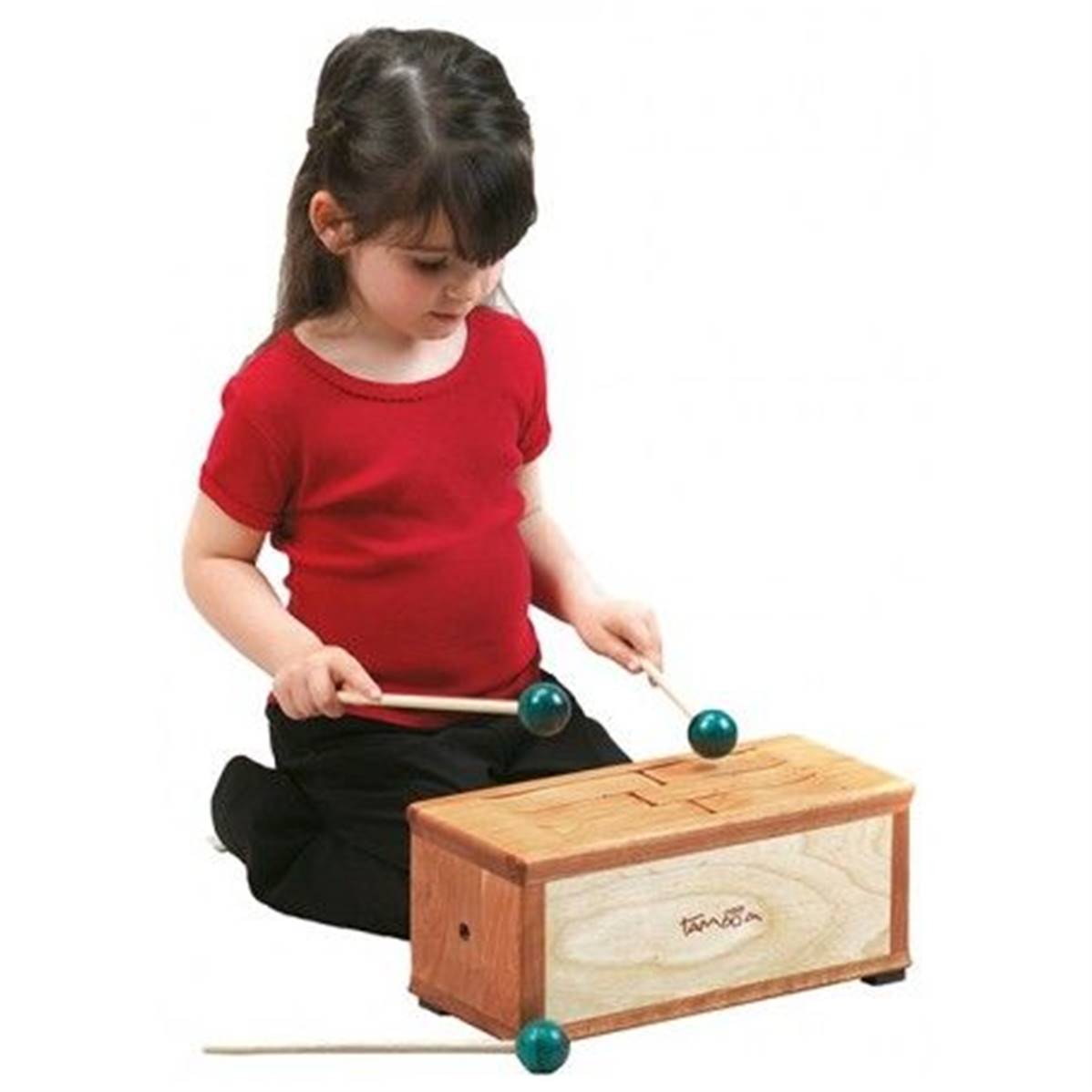 Idéal pour l'éveil musical, pour apprivoiser le rythme et la mélodie .Le Tamböa est ce petit instrument sympathique et mélodieux qui permet à tous et chacun de découvrir ou d'approfondir ses talents de musicien.Inspiré de la famille des tambours à fentes d'origines diverses (Afrique, Océanie, Amérique du Sud...), le Tamböa est une caisse de résonance surmontée de six languettes de cerisier d'automne accordées selon deux gammes pentatoniques (Ré et Mi) qui donnent à l'instrument une musicalité simple, harmonieuse et magique.Il n'a pas son pareil pour accompagner contes et légendes et est fort apprécié des musicothérapeutes.Le Tamböa accompagne harmonieusement bien une foule d'instruments tels la guitare, la flûte, les percussions, le didjeridoo et même le chant.Conçu et fabriqué au Québec, le Tamböa est livré avec trois mailloches parées de boules caoutchoutées afin de produire une variété d'accords.On peut aussi en jouer en frappant les notes avec ses doigts ou ses mains.- Jeu d'accompagnement - Jeu de communication et d'attention- Jeu du langage rythmé6 lames : En sol mineur = Sol, Mib, Fa, Sol, Sib, Do Dimensions : 330 x 140 x 150 mmLivré avec 3 maillochesEntièrement fabriqué en cerisier.