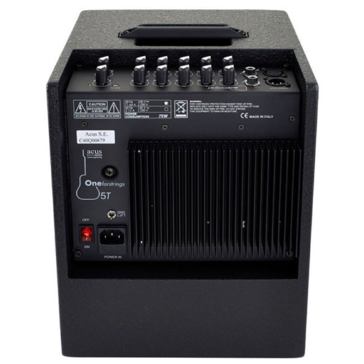 L'Acus OneForStreet 5 offre une puissance de 40w grâce à son boomer de 5” : il dispose de 2 canaux séparés (avec Gain/Volume, égaliseur 3 bandes et d'un départ d'effet), 1 entrée instrument et 1 entrée instrument + microphone équipée d'une alimentation fantôme toujours active.