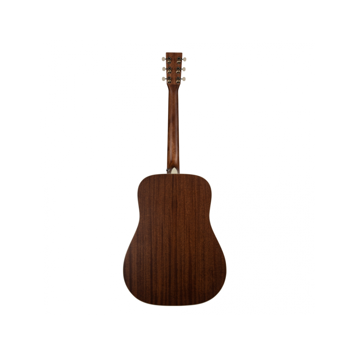 La guitare Art & Lutherie Americana Naturel EQ adopte un format Dreadnought, une table en Epicéa massif, un dos et des éclisses en Acajou ainsi qu'une touche en pau ferro.