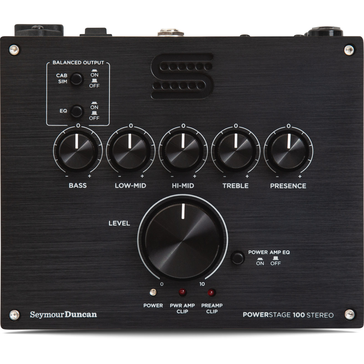 La gamme d'amplis de puissance compacts PowerStage de Seymour Duncan offre une amplification classe D ultra performante aux guitaristes dotés de configurations particulières. Si vous utilisez un préampli, une chaîne complète de pédales ou un modélisateur, le PowerStage 100 Stereo vous propose des fonctionnalités essentielles : des entrées et des sorties stéréo qui transmettent chacune 100 watts de son transparent à vos enceintes, une section d'égalisation étendue et des sorties ligne équilibrées avec simulation d'enceinte analogique commutable pour une projection plus authentique sur n'importe quel système audio. Les sons stéréo développés dans votre modélisateur d'ampli, votre unité multi-effets ou votre préampli seront restitués avec clarté via n'importe quelle paire d'enceintes, le tout dans un boîtier suffisamment petit pour tenir sur votre pédalier.