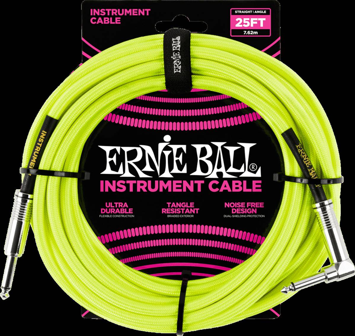 Ernie Ball CABLE JACK ERNIE BALL TISSE DROIT/COUDE 7M62 JAUNE