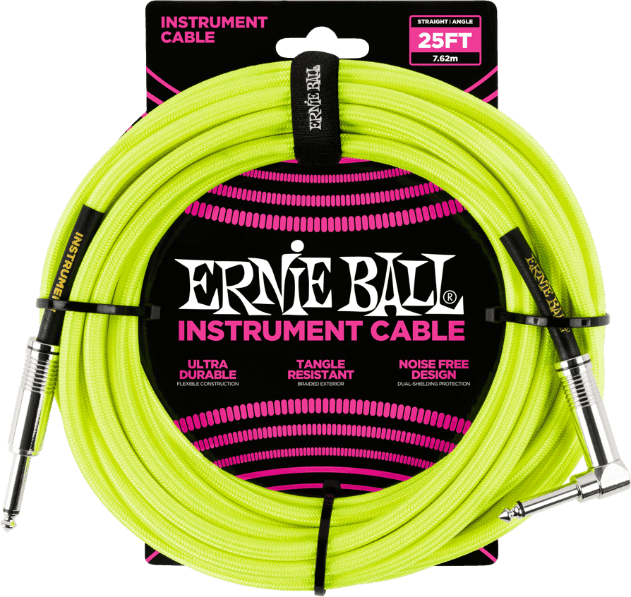 --- DISCONTINUE ---Ernie Ball CABLE JACK ERNIE BALL TISSE DROIT/COUDE 7M62 JAUNE