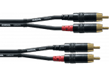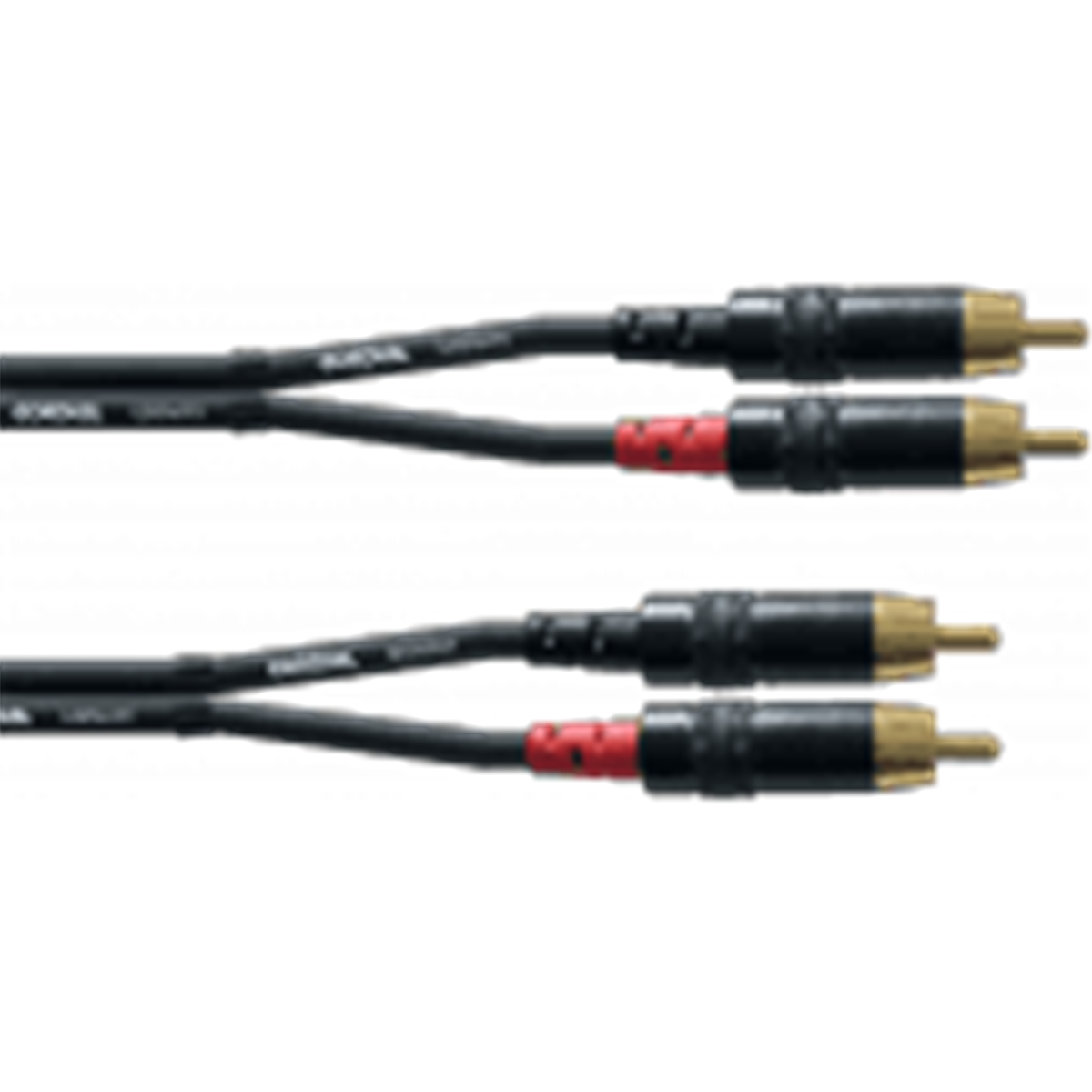 Connecteurs2x RCA / 2x RCAFichesREAN doré (Sous licence Neutrik)Longueur9 centimètresDescription du câble  ? Section de câble : 2x .22 mm²  ? Conducteurs : 28x .1mm cuivre nu  ? Résistance : 8?/km  ? Capacité : 8 pF/m  ? Enveloppe : PVC matDia