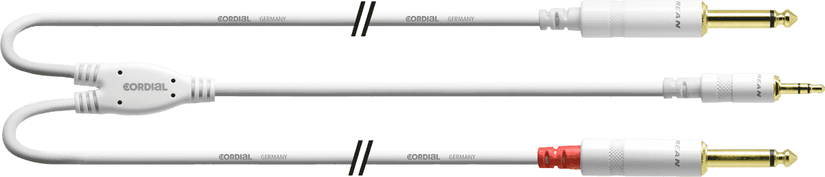 Cordial CFY1.5WPP-LONG-SNOW - câble bretelle mini-j. stér/2x j. mono blanc 1,5m