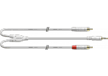 Câble Y Mini-Jack (3.5mm) vers 2 connecteurs RCA mâles équipé de connecteurs REAN (Sous licence Neutrik). Il est dôté d'un câble principal Mini-Jack court (15 cm) se séparant en deux câbles RCA longs (3m) très pratique lorsque les deux appareils à connec