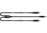 Câble Y Mini-Jack (3.5mm) vers 2 connecteurs RCA mâles équipé de connecteurs REAN (Sous licence Neutrik). Il est dôté d'un câble principal Mini-Jack court (15 cm) se séparant en deux câbles RCA longs (6m) très pratique lorsque les deux appareils à connec