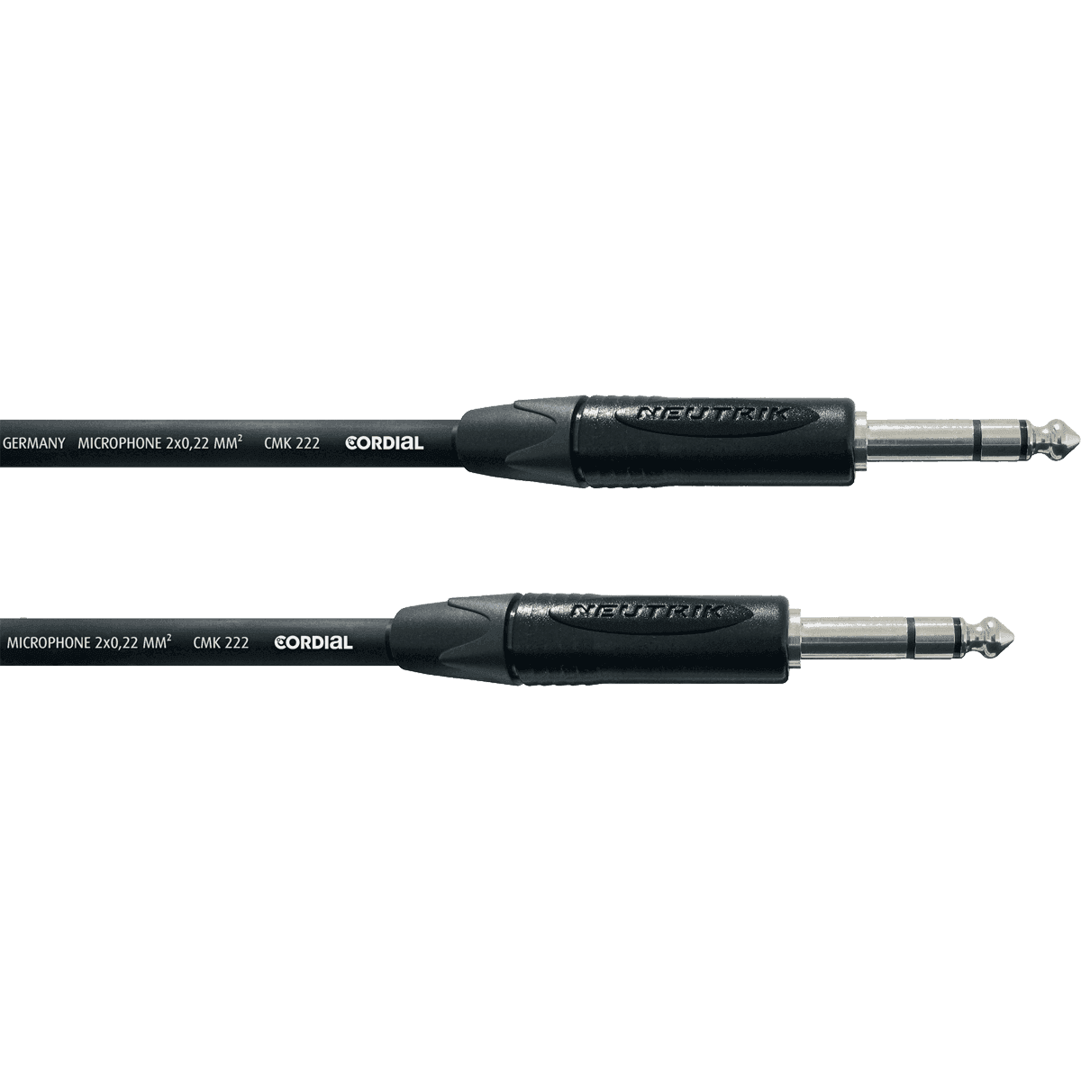 ConnecteursJack stéréo mâle / Jack stéréo mâleFichesNeutrik noirLongueur2.5 mètresDescription du câbleCâble Cordial CMK222 fabriqué en Allemagne  ? Section de câble : 2x .22 mm²  ? Conducteurs : 28x .1mm cuivre nu  ? Résistance : 85?/km  ? Capa