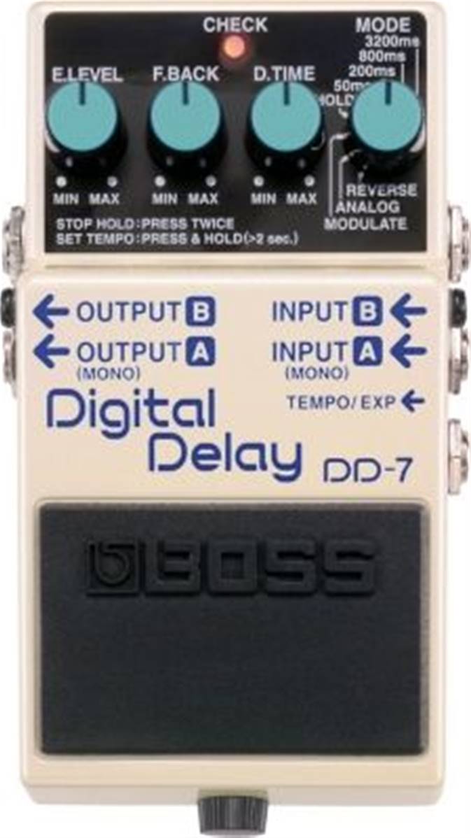 Le DD-7 ajoute deux nouveaux modes delay à l’offre que l’on a l’habitude de trouver sur ce type de pédales : «Modulation Delay» génère des sons rappelant un effet chorus, tandis qu’«Analog Delay» est un modèle fidèle de l’inoubliable et regretté BOSS DM-2.