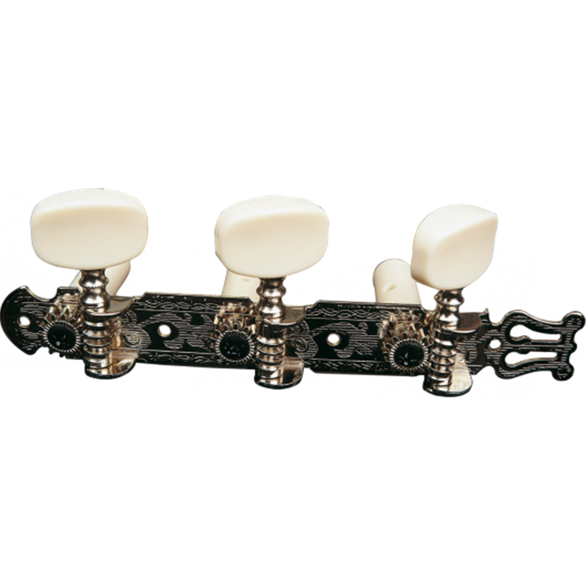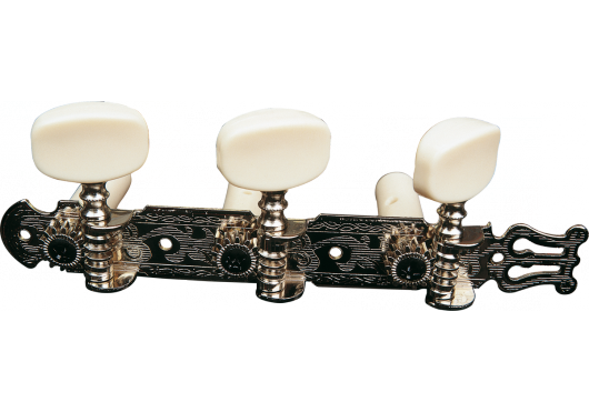 Mécaniques Classique platine nickel avec lyre / boutons plastiques 3 pour cordes nylon.