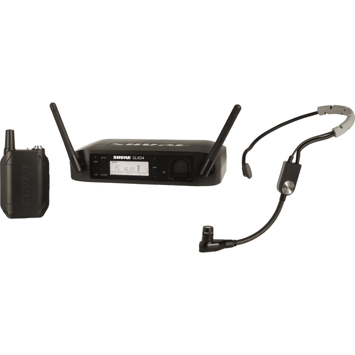 Système complet simple pour animateurs et chanteurs.Composé d'un récepteur GLXD4E d'un émetteur ceinture GLXD1 avec accu SB92 et d'un micro serre-tête statique cardioïde SM35?TQG.