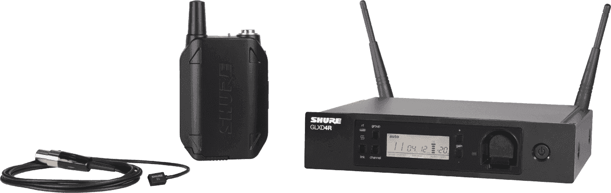 Système complet simple pour conférenciers et comédiens. Composé d'un récepteur GLXD4R d'un émetteur ceinture GLXD1 avec accu SB92 et d'un micro cravate statique cardioïde WL93.