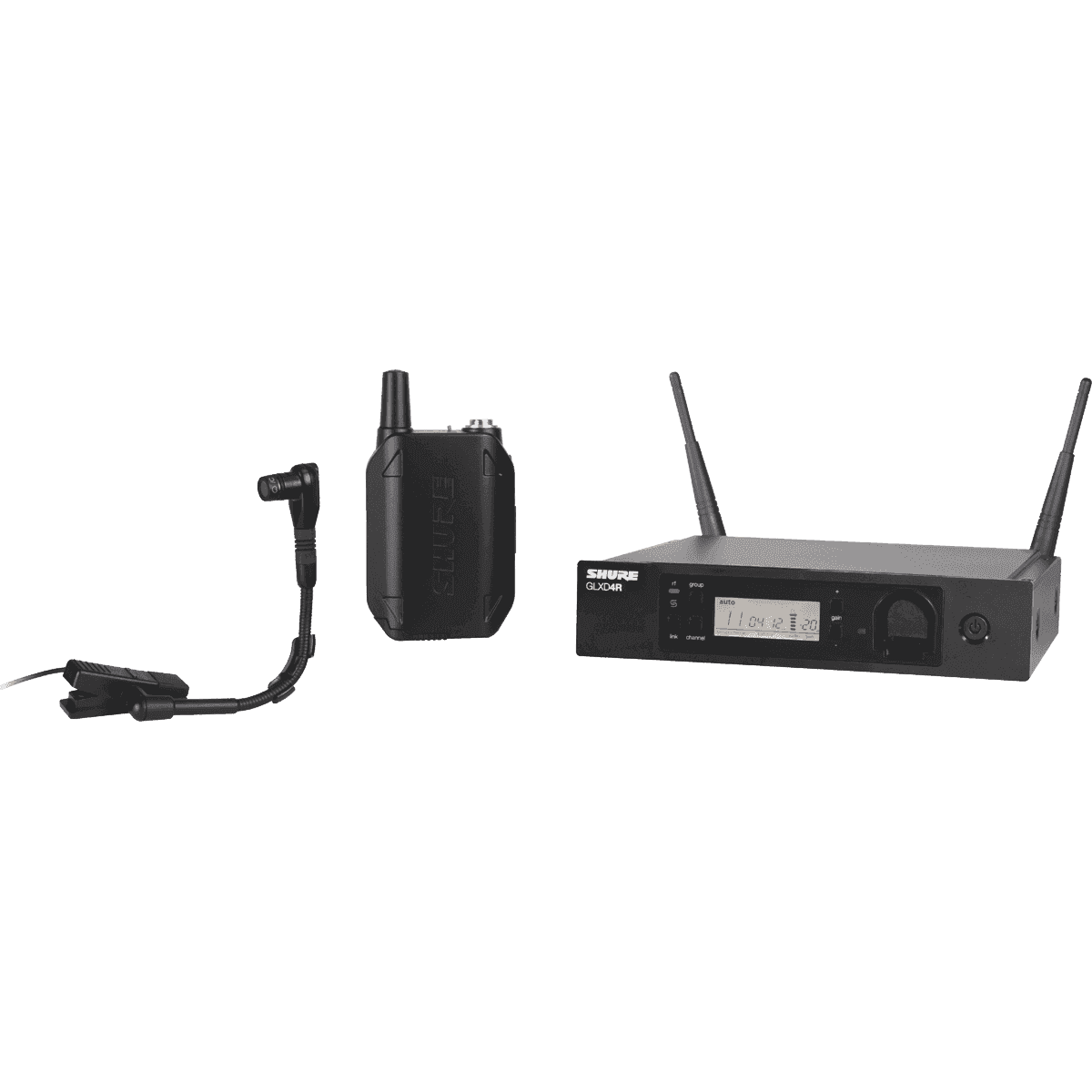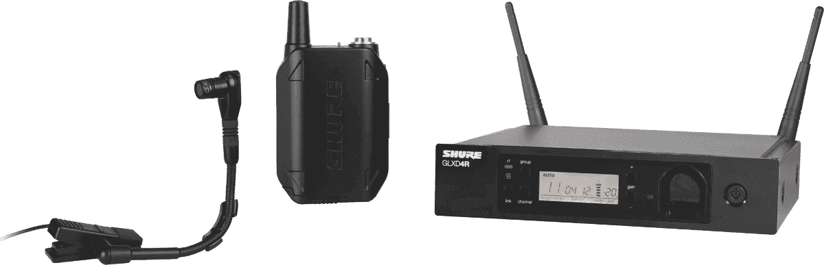 Système complet simple pour cuivres bois accordéons et percussions. Composé d'un récepteur GLXD4R d'un émetteur ceinture GLXD1 avec accu SB92 et d?un micro instrument statique cardioïde avec pince intégrée WB98H/C.