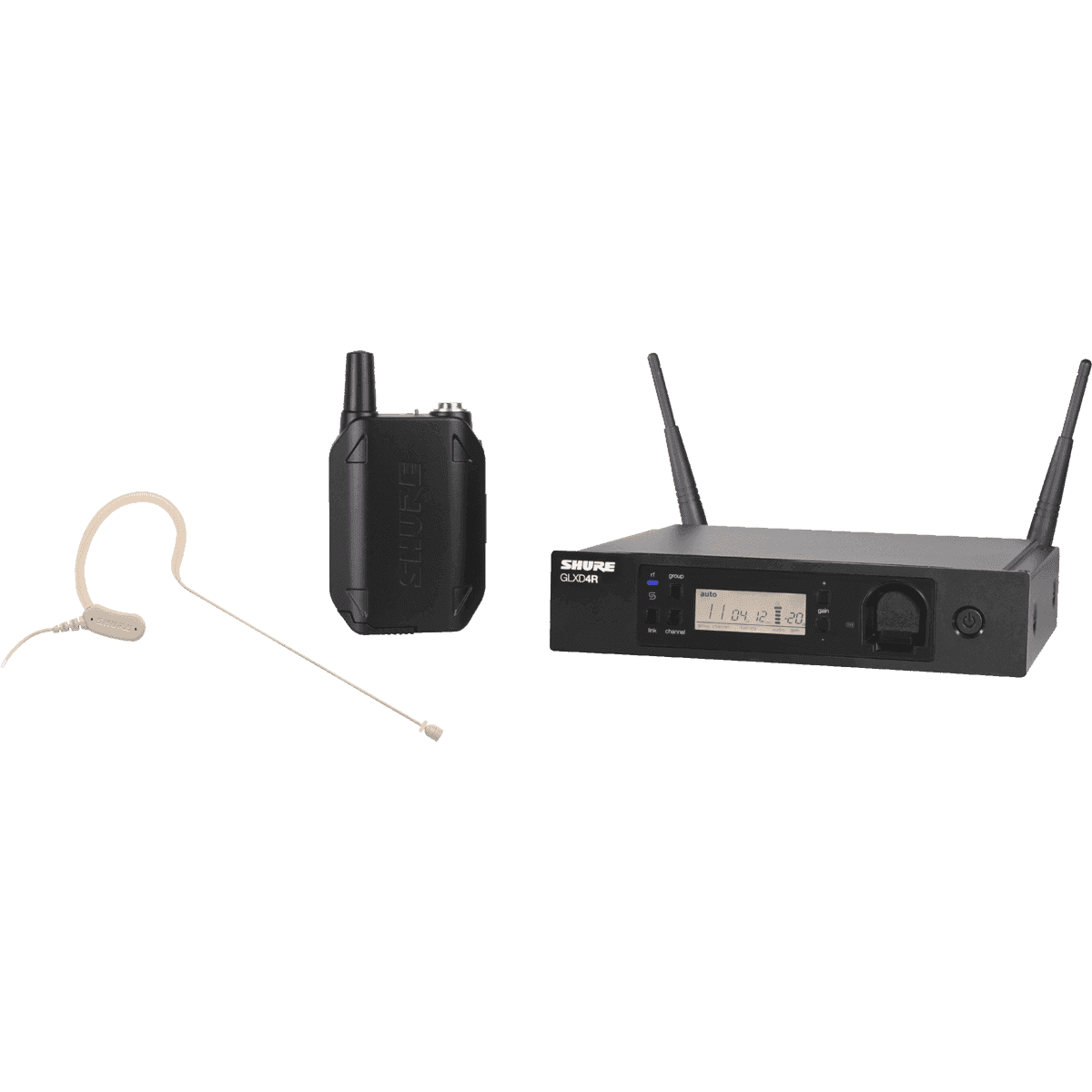 Système complet simple pour animateurs et conférenciers. Composé d'un récepteur GLXD4R d'un émetteur ceinture GLXD1 avec accu SB92 et d'un micro tour d?oreille statique omnidirectionnel couleur chair MX153T-O-TQG.