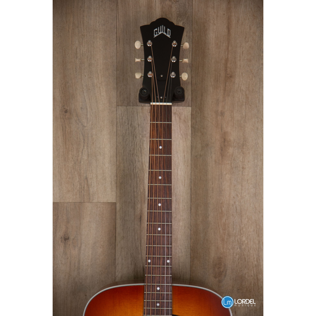 • accordeurs : Guild Deluxe Vintage Open Gear, boutons ovales blanc crème
