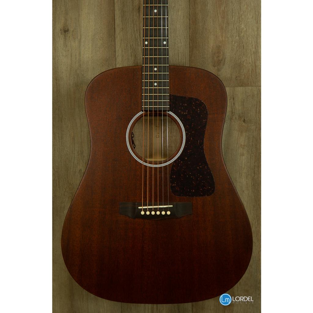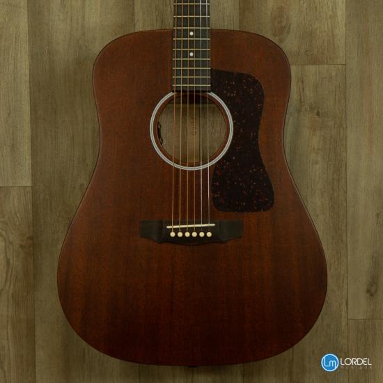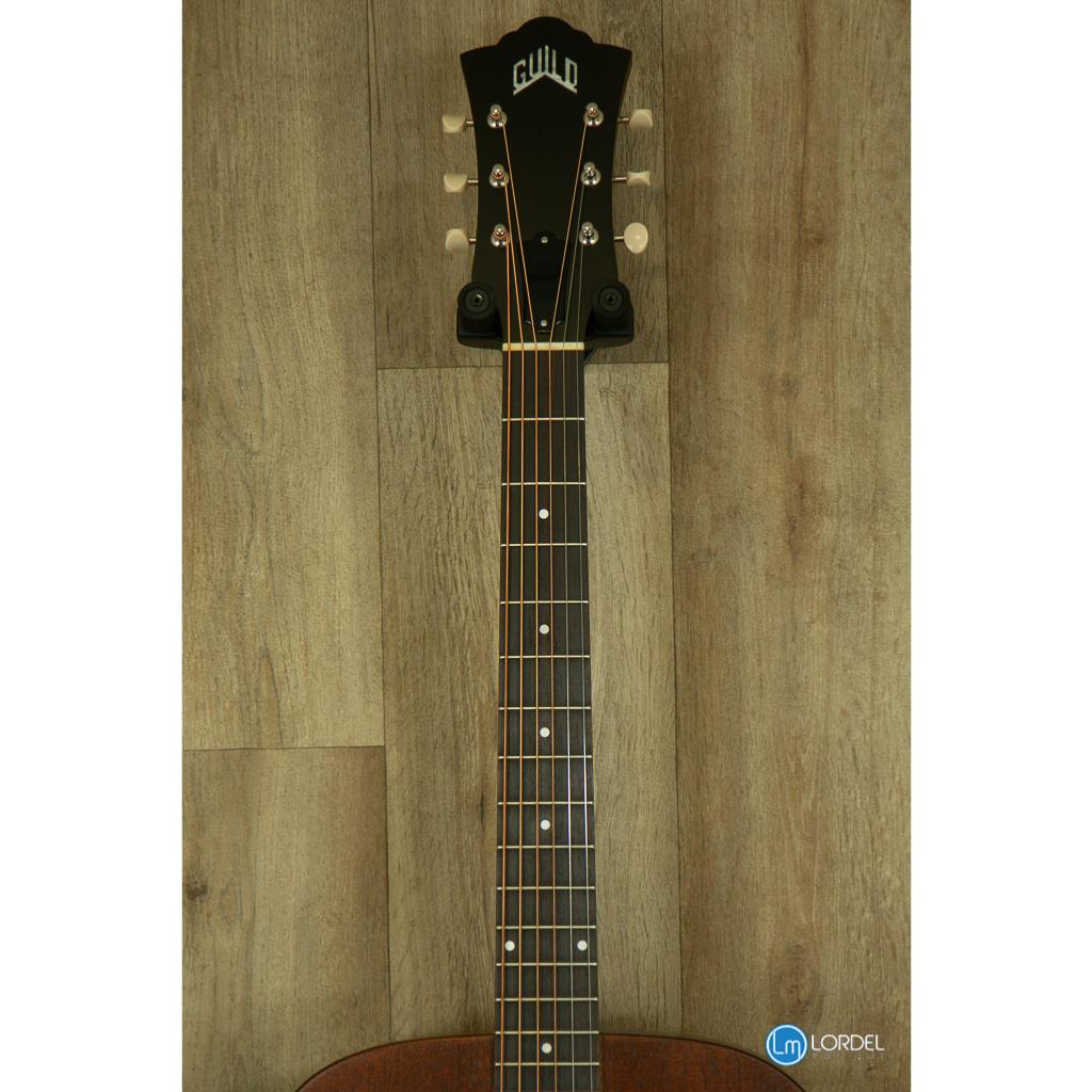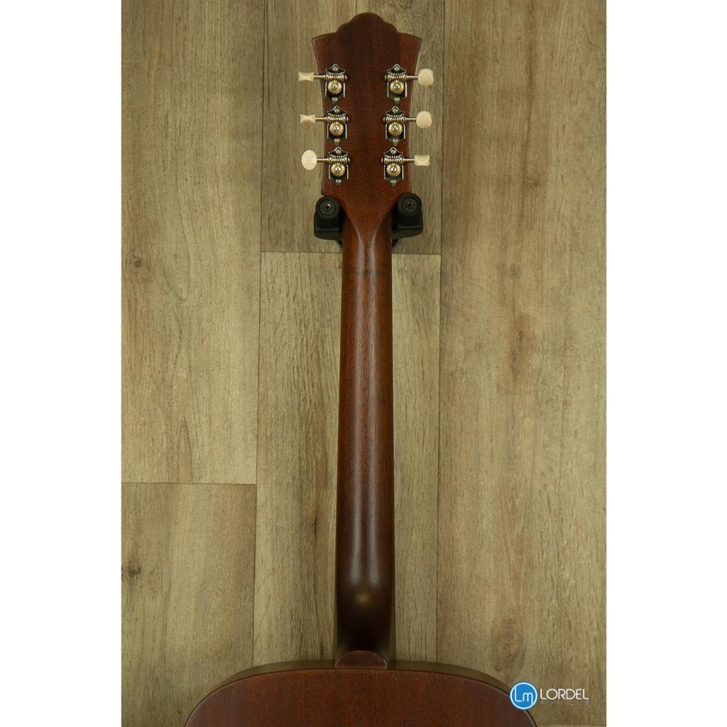 La D-20 est une guitare acoustique Dreadnought construite avec une table, un dos et des éclisses en acajou massif. Introduit pour la première fois dans la gamme Guild en 1968, ce modèle comprend un chevalet et une touche en palissandre, de sillets en os, et une finition satinée extrêmement légère qui permet à cette guitare de sonner "vrai". L'estétique modeste de la D-20 comprend une rosace de style vintage et le logo Guild incrusté de nacre sur la tête. Chaque D-20 est livrée avec un certificat d'authenticité numéroté et signé à la main et est livrée avec un étui rigide. Finition Naturel.