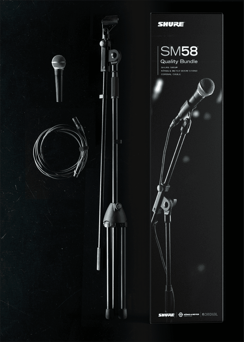 On ne présente plus le SM58-LCE... Ce légendaire micro chant arrive enfin dans un bundle qualitatif. Voici le SM58-BUNDLE, un pack complet résultant de l'association de 3 grandes marques, pour vous proposer le plus célèbre des micros accompagné de 2 accessoires indispensables.