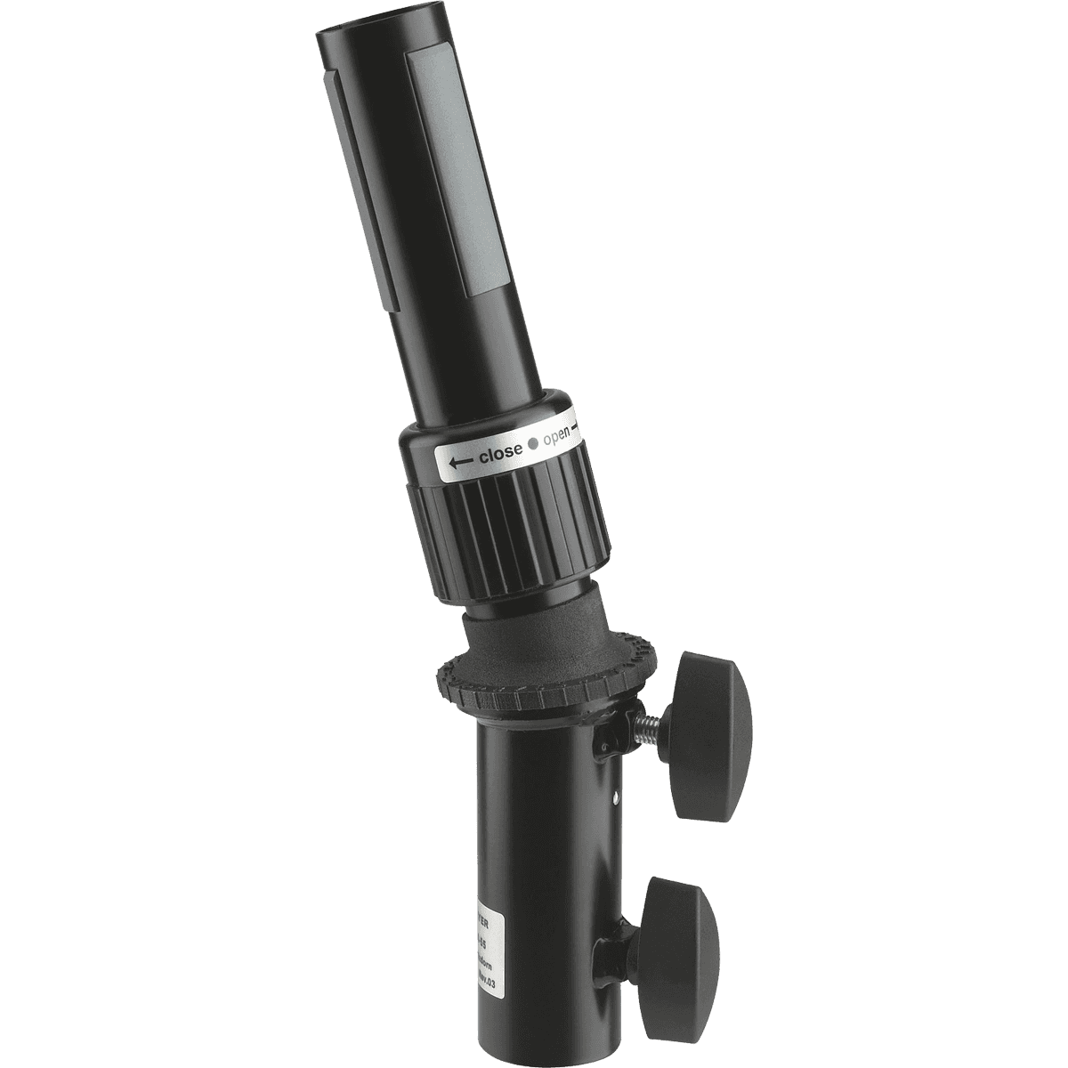 Permet d'ajuster l'enceinte sur le plan vertical entre et 15°. Mandrin à expansion pour adaptation du diamètre de l'embout à l'enceinte.