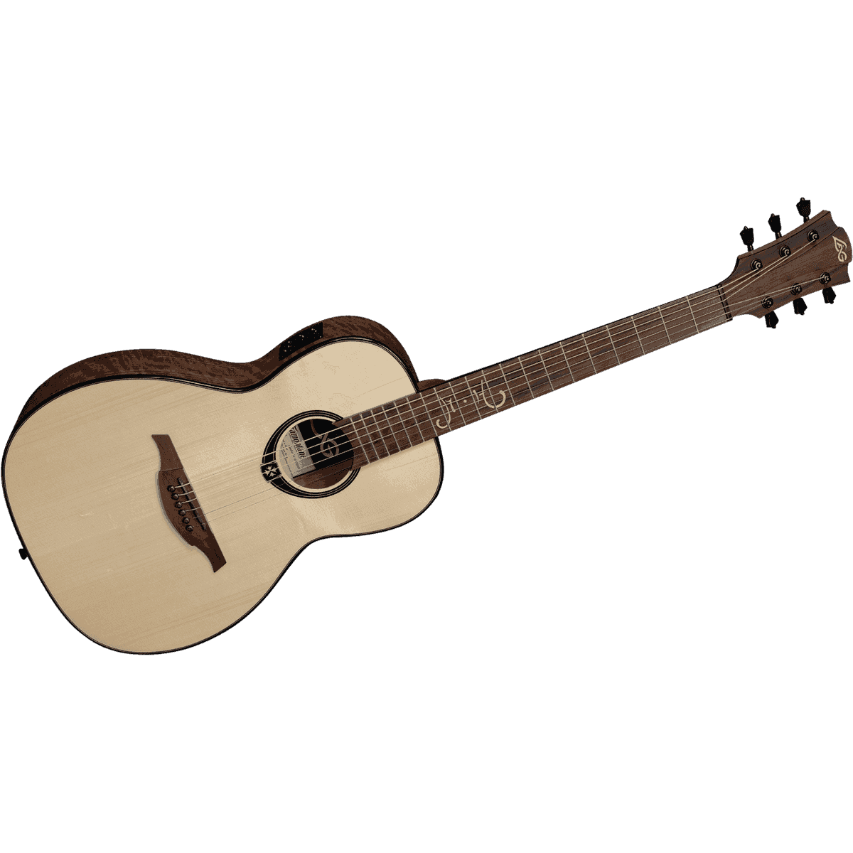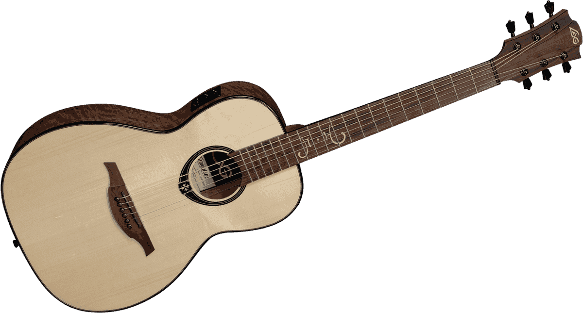 Chaleur des notes, générosité du timbre, finesse de la lutherie etconfort de jeu : mes 4 points cardinaux pour apprécier une guitare. Ils sontenfin réunis grâce à ce modèle Signature. Merci Lâg. Michel Haumont- Forme : parlor- Table : épicéa Sitka AAA massif- Dos & éclisses : ovangkol flammé- Corps : vernis brillant- Manche : khaya, finition satinée- Touche, tête & chevalet : brownwood- Tige de réglage : double sens- Frettes : 20 / silver nickel- Diapason : 650 mm- Incrustations : MH et logo Lâg en nacre- Mécaniques : haute précision / noir satin- Sillets de tête & chevalet : graphite noir / 47 mm / 72 mm compensé- Cordes : D?Addario EXP light 012-053- Électronique : Fishman Ink Body? Micro Sonicore? Capteur intérieur? EQ 4 bandes? Phase, notch? Tuner chromatique? Led témoin pile? Etui inclus